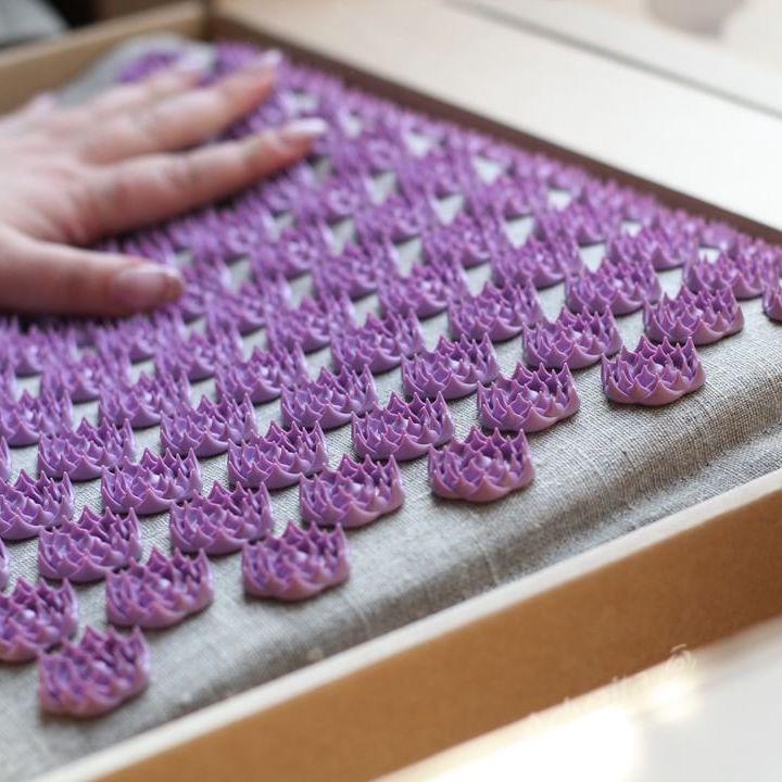 Directly inspired by acupuncture and traditional Chinese medicine, Acupressure Mat helps relieve back pain. This is a patented therapeutic mat whose surface is covered with stimulators having a lotus flower shape.